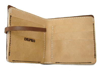 • ココア色のソフト牛革と内側にヌメ革を使用した二つ折りの財布です。