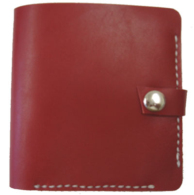 赤色のソフト牛革とヌメ革を使用した小銭入れ付きの二つ折り財布です。