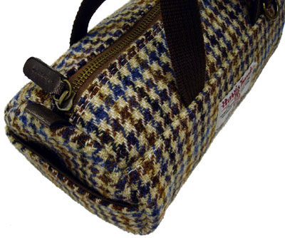 ハリスツイードの代表的な柄のひとつである千鳥格子のちびボストンはコンパクト収納できるお出掛けサイズです。